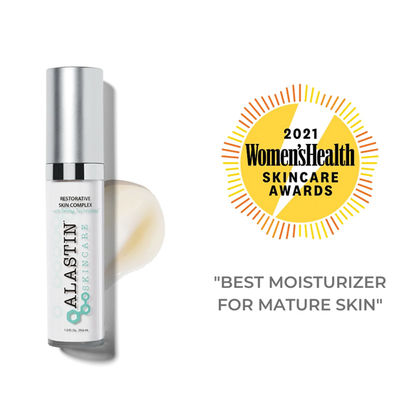 ^In a clinical study of 22 subjects ages 45-65 who used an anti-aging regimen (Restorative Skin Complex with TriHex Technology®, Gentle Cleanser, Daily Moisturizer, and Broad Spectrum Sunscreen SPF 30+) twice daily (sunscreen only once daily) for 12 weeks. Data on file at ALASTIN Skincare.